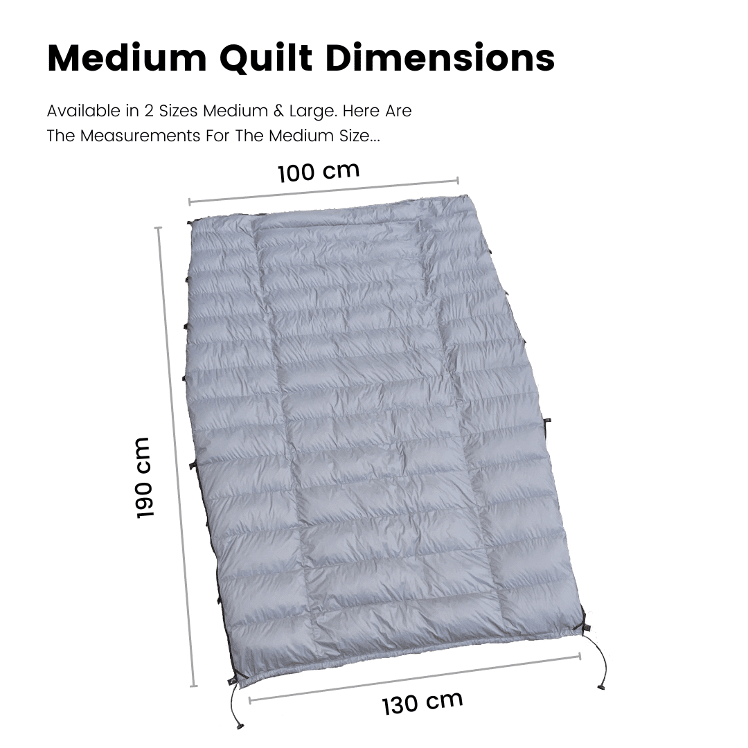 This Ultralight Quilt is Available in 2 sizes, Medium & Large. Its Compact Size When Packed Makes It Perfect For Backpacking & Wild Camping.